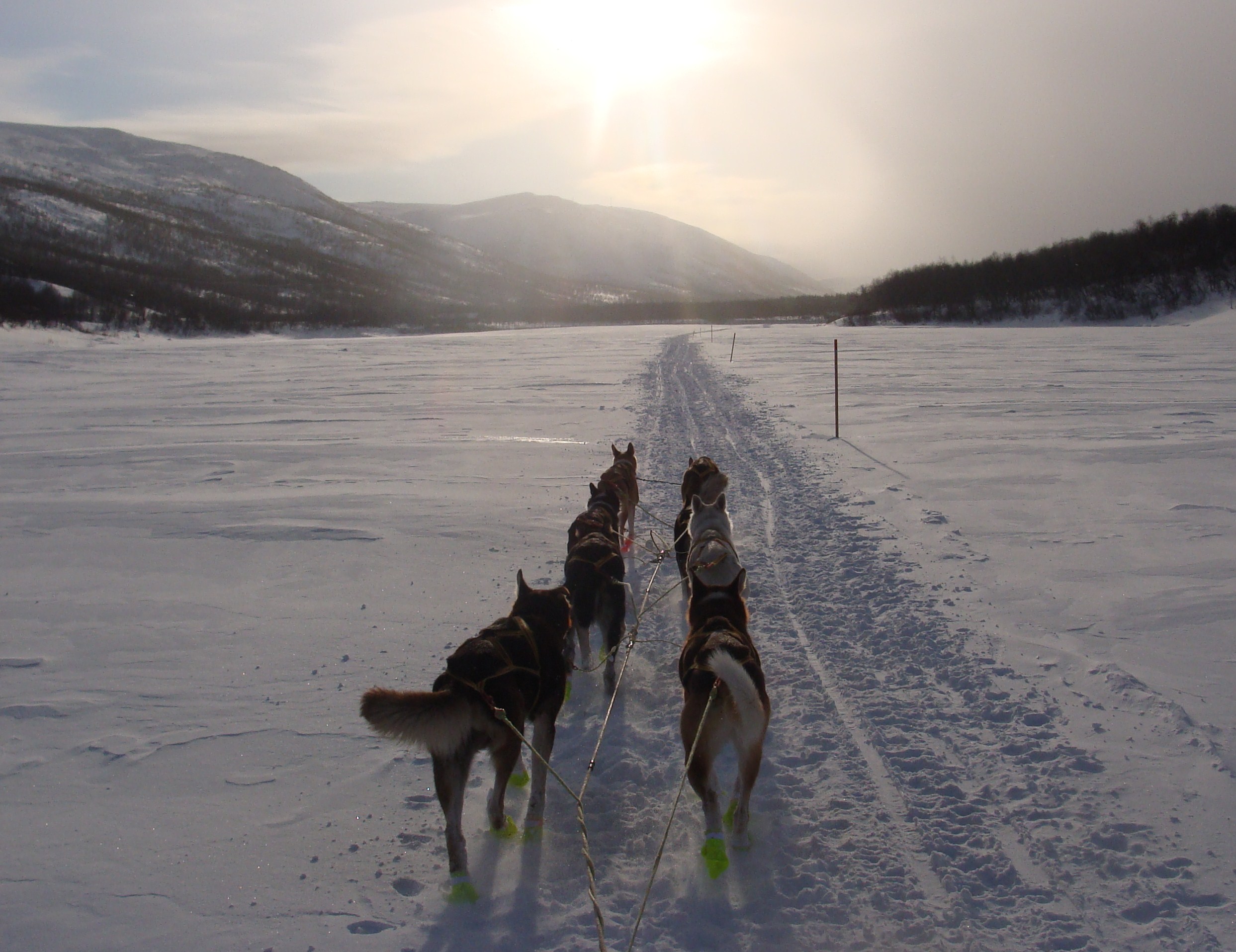 Koia, Buster, Mokke and Mie was in perfect condition. I realized that I had to leave Mille and Ginkgo here, and worked a lot on the others to get them fit for the next stage. I also decided to rest 2 hours more than planned, With 6 dogs it is no problem to reach the finish line. After massaging, putting in som heat creme, wrist warmers and giving the dogs extra rest I went out to check them again.