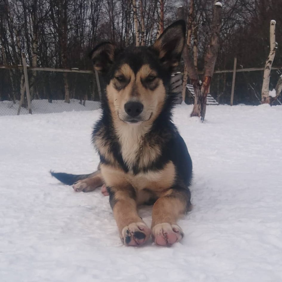 Born on July 29.th 2017. Son of Mie and Vouma. As a small puppy, he was far bigger than the others, and his name is one of the Sami words for Mountain.